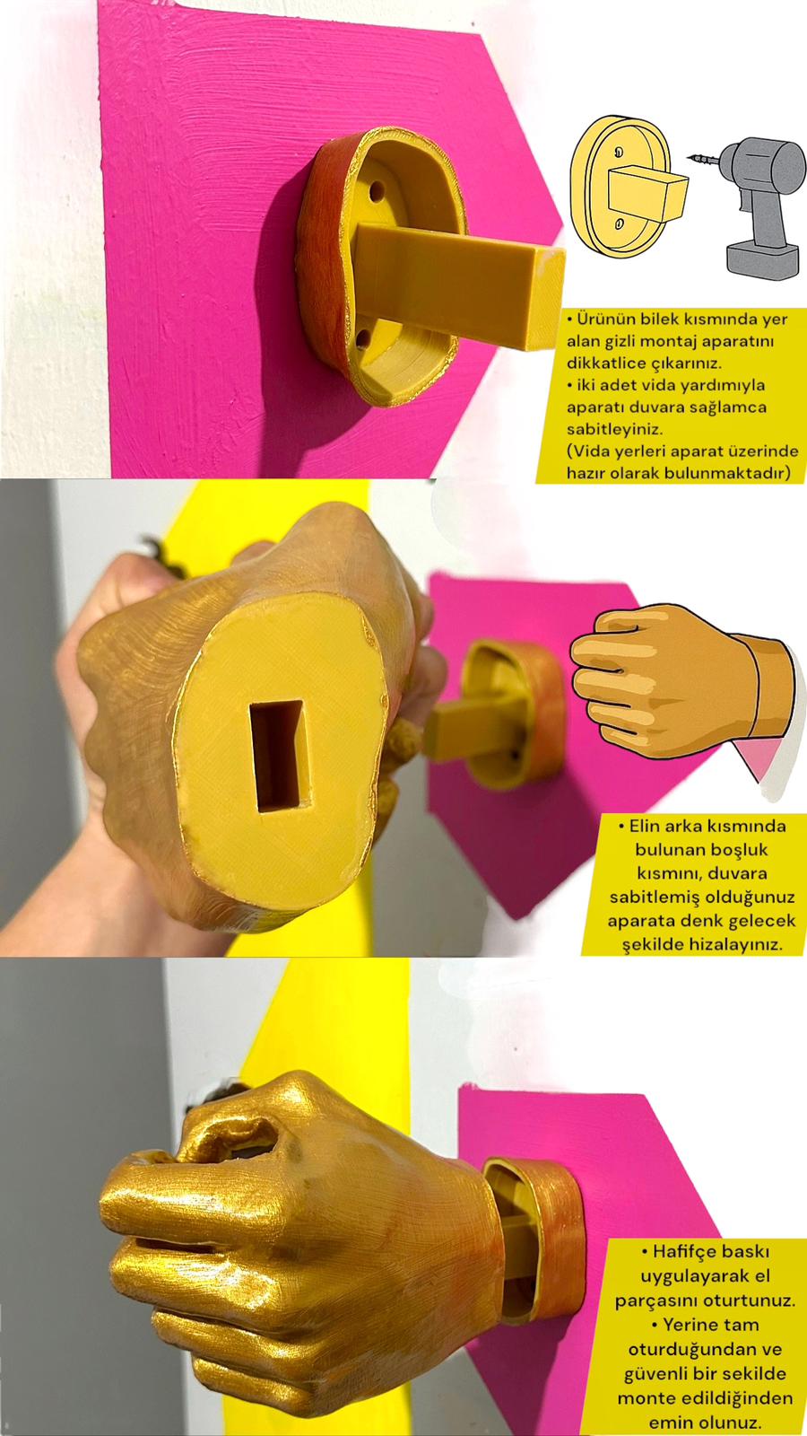 Ürünün bilek kısmında gizli montaj aparatı bulunmaktadır (örnekleri görsellerde paylaşılmıştır).